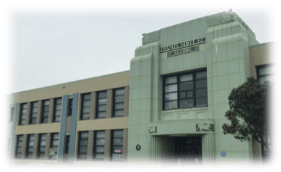 The first school in Oceanside was founded in 1903 and met beneath a grocery store on 48th Avenue. In 1908, a large, new Oceanside Primary School was built on 43rd Avenue, between Irving and Judah. Two stories and a basement in height, and covered with wooden shingles, it was a substantial addition to the neighborhood. This school building was demolished and rebuilt in 1913; the name was subsequently changed to Francis Scott Key School. In the late 1910s or early 1920s, a large, wooden half-timbered Francis Scott Key School Annex, its first story clad in 12-inch wide redwood planks, was built at 1351 – 42nd Avenue. This building still exists. In 1938, Francis Scott Key School relocated to the current site on 43rd Avenue between Kirkham and Lawton in the Sunset District of San Francisco a few blocks from Ocean Beach. The school was recently renovated to its current beautiful building and yard that’s open